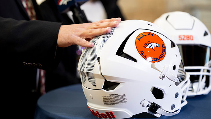 News: The Broncos announce the launch of ALL IN. ALL COVERED. on Tuesday, an unprecedented initiative to distribute more than 15,000 new Riddell Axiom smart helmets to every high school tackle football program across the state at no cost.